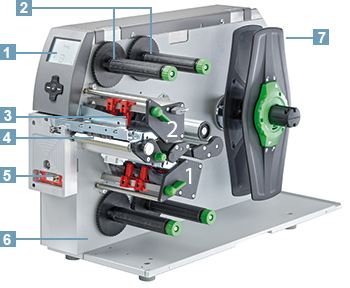 印字頭由左右兩支立柱加壓控制打印質(zhì)量。標(biāo)簽為置中輸出設(shè)計(jì),因此不需對(duì)印字頭進(jìn)行調(diào)整和設(shè)定。