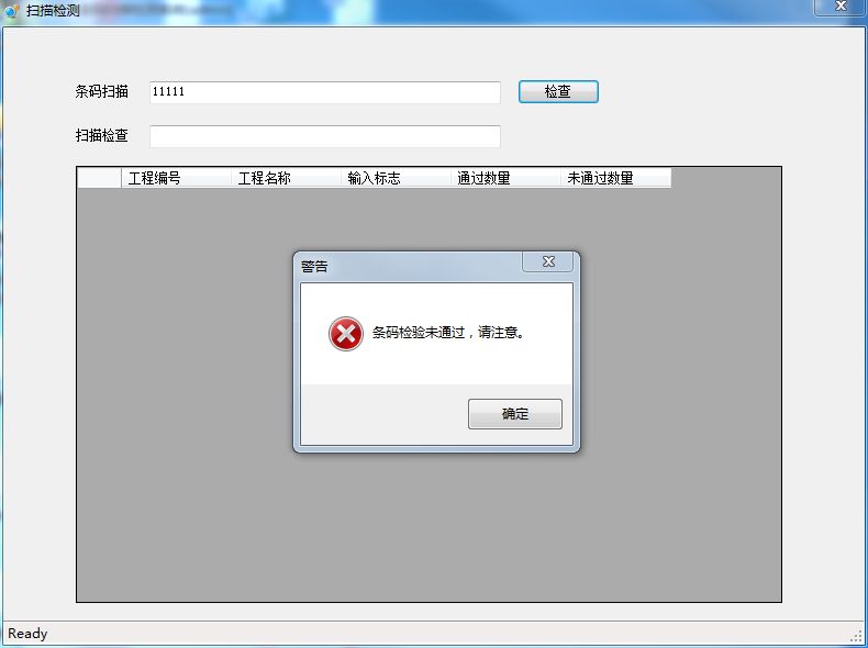 11:掃描檢測界面。此界面可以接受二維碼的掃描輸入,并根據(jù)之前工程的檢驗結(jié)果進行 OK/NG 的結(jié)果判