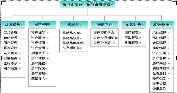 產(chǎn)品名稱:固定資產(chǎn)管理系統(tǒng)所屬分類:固定資產(chǎn)管理系統(tǒng)產(chǎn)品簡述:高飛公司提供的固定資產(chǎn)條碼管理解決方案是把條碼技術(shù)或RFID電子標(biāo)簽引入固定資產(chǎn)管理,采用條形碼或RFID對固定資產(chǎn)進(jìn)行唯一標(biāo)識,從技術(shù)上最大限度的保證了資產(chǎn)的帳實(shí)相符,進(jìn)而避免流失