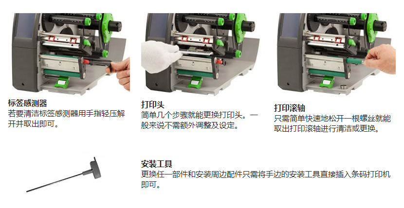 條碼打印機(jī)的機(jī)構(gòu)料件皆以高品質(zhì)的材料制作且在外型及功能上達(dá)到完美的協(xié)調(diào)性。多元的周邊配件和軟件可提供客制化的解決方案。