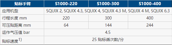 針對(duì)所有具備剝離功能的條碼打印機(jī),貼標(biāo)手臂 S1000 搭配條碼打印機(jī) SQUIX 是相當(dāng)經(jīng)濟(jì)實(shí)惠的解決方案 - 不僅可半自動(dòng)操作也能垂直建置于生產(chǎn)線上。借由舉升氣缸將標(biāo)簽貼在產(chǎn)品上。
