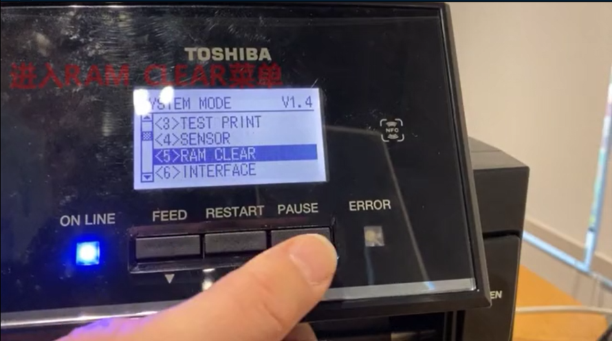 關(guān)機(jī)——同時(shí)按住FEED鍵和PAUSE鍵——開機(jī)——顯示屏顯示英文可以松開FEED和PAUSE鍵了——啟動(dòng)后進(jìn)去系統(tǒng)設(shè)置模式。