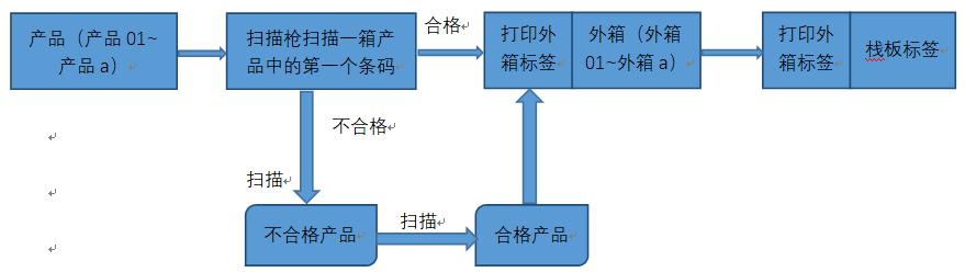 (1)產(chǎn)品條碼為流水碼,依次進(jìn)入紙箱工位,只需要掃描第一個(gè)條碼通過a值自動(dòng)生產(chǎn)包裝數(shù)量條碼。——同批次數(shù)量固定